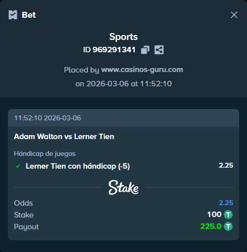Las casas de apuestas ofrecen cuotas bastante interesantes para este encuentro. Actualmente, la cuota para Adam Walton es de 4.80, mientras que para Lerner Tien es de 1.18. También hay opciones para el total de juegos, con más de 21.5 juegos a 1.96 y menos de 21.5 juegos a 1.78.