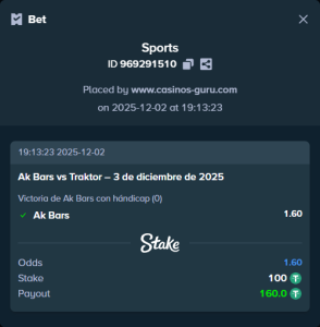 - Victoria de Ak Bars con hándicap (0) a 1.60