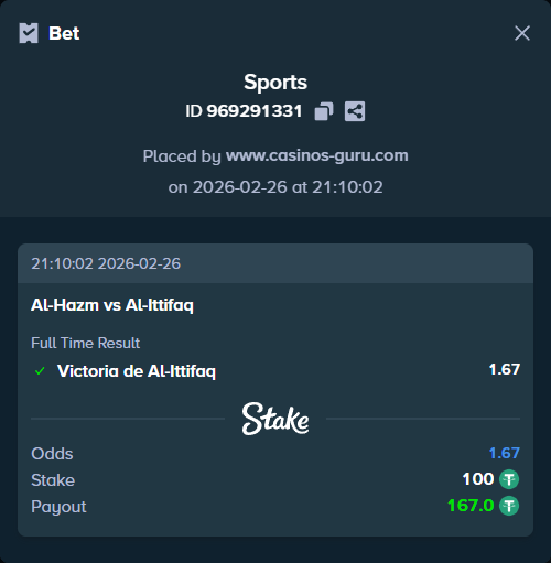- Apuesta principal: Victoria de Al-Ittifaq.