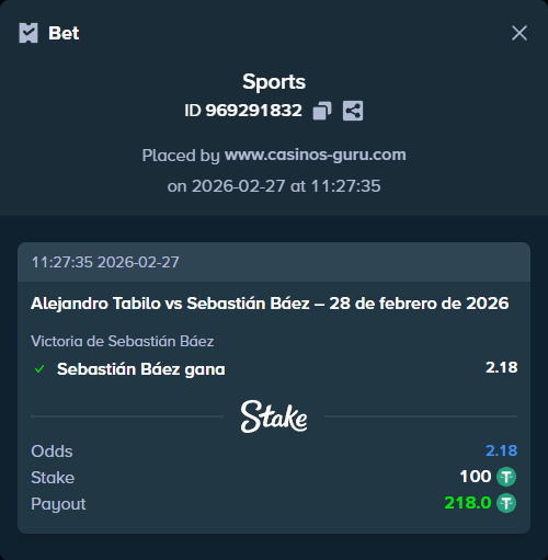 Resultado esperado: Sebastián Báez gana – Apuesta recomendada: Victoria de Báez (cuota 2,18)
