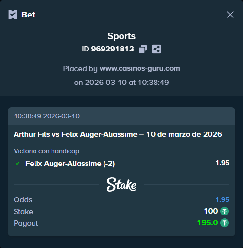- Apuesta principal: Victoria de Auger-Aliassime con hándicap (-2) – cuota 1,95