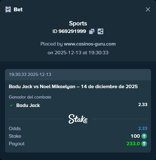 El enfrentamiento entre Badu Jack y Noel Mikaelyan promete ser emocionante. No olvides realizar tus apuestas de manera responsable y disfrutar del espectáculo. ¡Comenta y comparte tu pronóstico con nosotros!