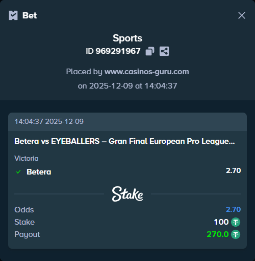 Betera ha demostrado un excelente rendimiento en su camino a la final, llegando al último partido tras derrotar a VP.Prodigy el 8 de diciembre. El resultado fue un claro 2-0, donde los mapas de Ancient y Train finalizaron 13-6 y 13-9 respectivamente. Desde el inicio, Betera se presentó en un nivel superior, logrando un parcial de 9-3 en la primera mitad de la primera partida, lo que les dio el control total del juego. En Train, su capacidad de adaptación y estrategia les permitió marcar la diferencia tras el cambio de lados. Destacaron playeres como MaSvAl, con un rating de 1.64, y tENZY, que tuvo un rating de 1.42.