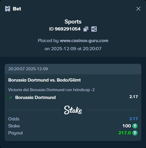 - Apuesta principal: Victoria del Borussia Dortmund con hándicap -2 a cuota 2.17.