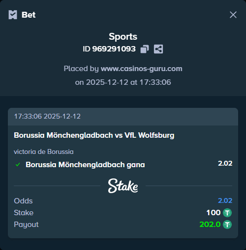 Resultado esperado: Borussia Mönchengladbach gana. Apuesta recomendada: victoria de Borussia con cuota 2.02