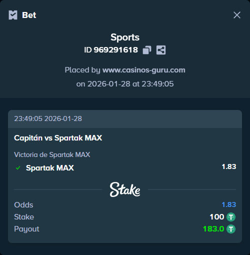 Resultado esperado: Victoria de Spartak MAX. Apuesta recomendada: Victoria de Spartak MAX con cuota 1.83