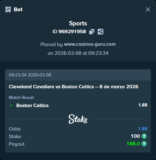 Resultado esperado: Boston Celtics ganará. Apuesta recomendada: Boston gana con cuota de 1.88.