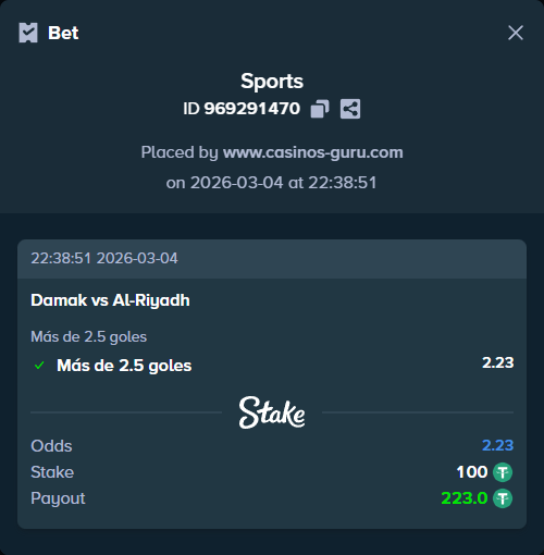 - Apuesta de riesgo: Victoria de Damak (Cuota: 2.29)