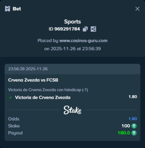 - Victoria de Crvena Zvezda (hándicap -1) a una cuota de 1.80.
