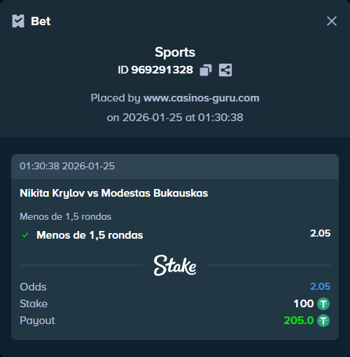 - Apuesta principal: Menos de 1,5 rondas – Cuota 2,05