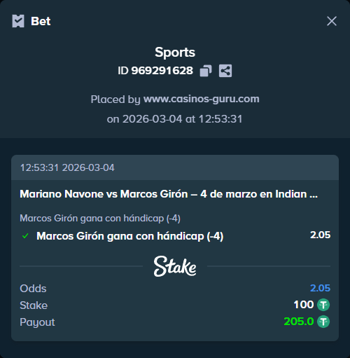 Si prefieres una apuesta más segura, la victoria directa de Marcos Girón también es una buena opción, con una cuota de 1.40. Aunque no será una apuesta con una alta ganancia, es una opción confiable dado el nivel de forma de Girón y las dificultades de Navone en esta superficie.