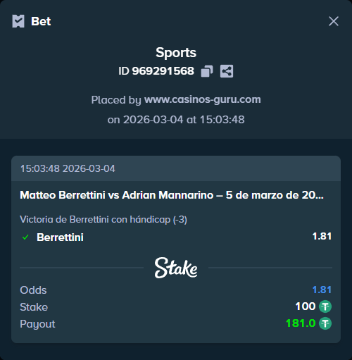 Pronóstico: Victoria de Berrettini con hándicap (-3), 5 de marzo de 2026 – Apuesta recomendada