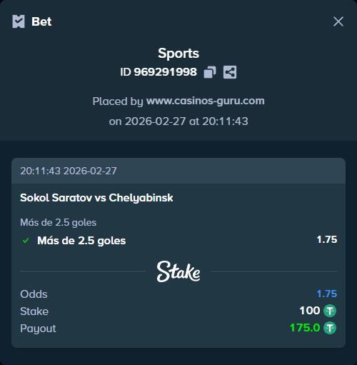 - Apuesta principal: Victoria de Chelyabinsk (2.00)
