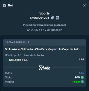 Significa que Sri Lanka comenzaría el partido con una ventaja de 1.5 goles, aumentando las posibilidades de que cubra la apuesta.