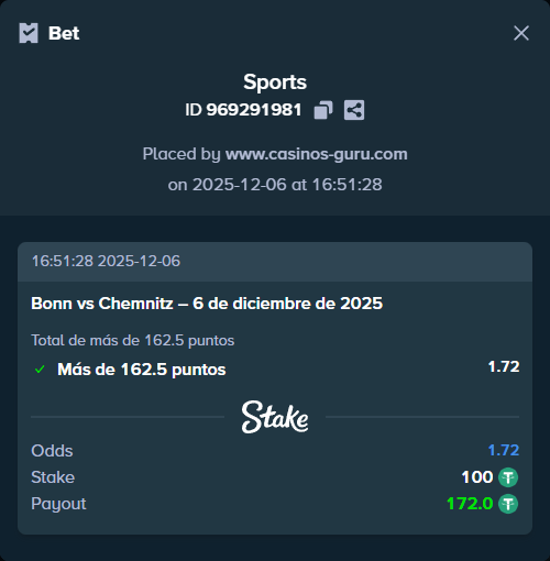 Resumen: Esperamos una victoria del Bonn con un total de más de 162.5 puntos
