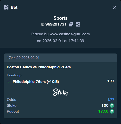 La apuesta principal recomendada es que Boston ganará el partido. Sin embargo, teniendo en cuenta el buen momento de Philadelphia, una apuesta segura podría ser a favor de Philadelphia con un hándicap (+10.5) a cuota de 1.77, lo que significa que los 76ers deberían perder por menos de 11 puntos o ganar el partido.