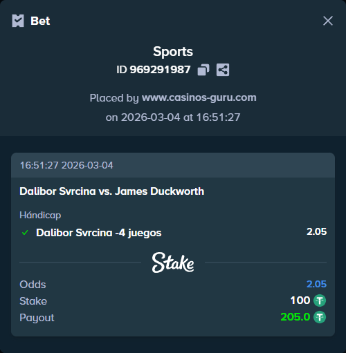 Dalibor Svrcina y James Duckworth se enfrentarán el 5 de marzo en la primera ronda del torneo en Indian Wells. Recientemente, Svrcina venció a Duckworth en un torneo en Acapulco en dos sets. ¿Cómo será el próximo partido entre ellos? Las apuestas en esta pelea están en nuestro pronóstico.