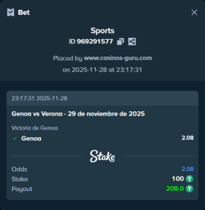 Nuestra segunda recomendación: Apostar por más de 2.5 goles en el partido, a una cuota de 2.75. Con el enfoque ofensivo que trae Genoa, se espera que el marcador sea alto.