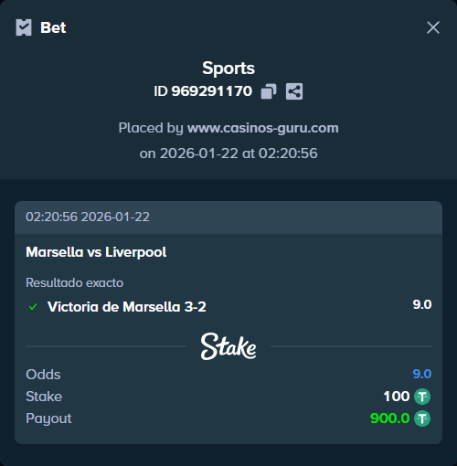 - Resultado exacto 3-2 a favor de Marsella – cuota 9.0