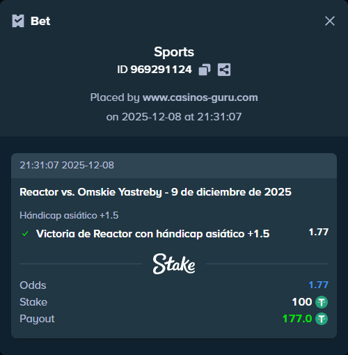 Recomendamos una apuesta en la hándicap asiática de +1.5 para Reactor con una cuota de 1.77.