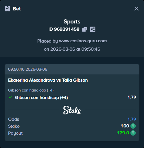 El hándicap (+4) para Gibson representa una apuesta segura en caso de que el partido se mantenga equilibrado. Considerando la forma reciente de ambos jugadores, este hándicap parece una opción viable para minimizar riesgos.