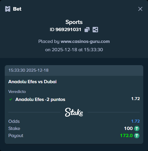 Nuestra apuesta principal es la victoria de Anadolu Efes con un handicap de -2 puntos a una cuota de 1.72. El equipo turco llega a este partido lleno de confianza tras su última victoria y la llegada de un nuevo entrenador, lo que puede ser un factor motivacional clave en su juego home.