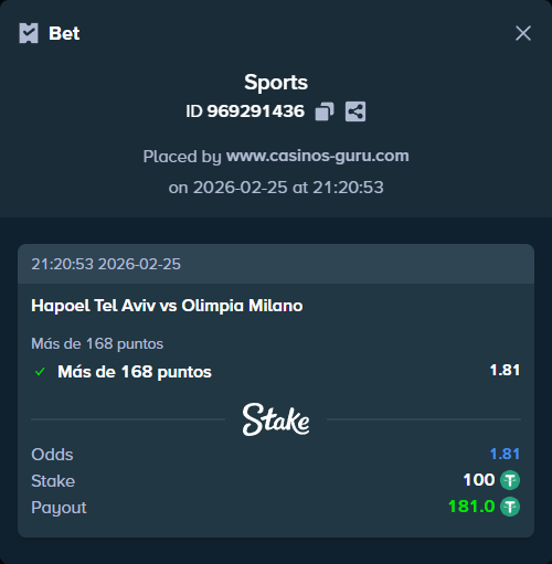 - Apuesta principal: Más de 168 puntos (Cuota: 1.81)