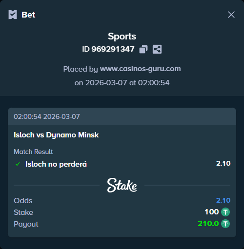 Isloch ha mostrado buena solidez defensiva frente a rivales de mayor nivel. Dynamo Minsk es favorito, pero los anfitriones podrían mantener el empate o incluso sorprender en casa. El pronóstico principal es “Isloch no perderá” con cuota 2.10.