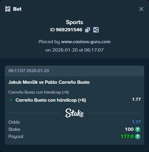 - Apuesta segura: Carreño Busta con hándicap (+6) a cuota de 1.77.