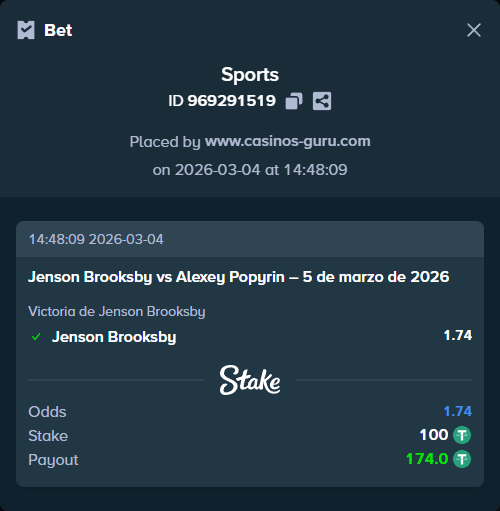 Basado en el análisis de las últimas actuaciones de ambos jugadores, se recomienda apostar por la victoria de Jenson Brooksby. Su forma reciente, junto con su rendimiento en Dubai, lo coloca como el favorito para ganar este partido. Las casas de apuestas otorgan una cuota de 1,74 para la victoria de Brooksby, lo que representa una buena oportunidad para una apuesta segura.