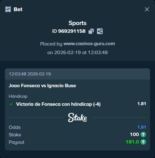 Fonseca todavía está lejos de su condición óptima, pero es obvio que el brasileño poco a poco va ganando impulso. La baza más importante de Joao en el próximo partido será el apoyo de su público. Es poco probable que Buse, cuya forma actual deja mucho que desear, resista una presión tan colosal. Lo más probable es que el brasileño venza con confianza al peruano en casa. Nuestra previsión es la victoria de Fonseca con hándicap de juego (-4) para una cuota de 1,81.