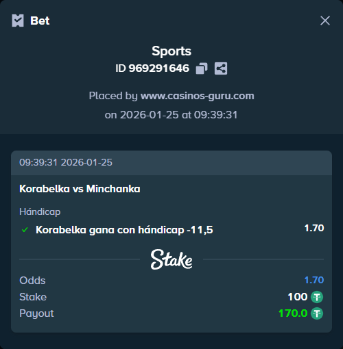 - Apuesta principal: Korabelka gana con hándicap -11,5 (1,70)