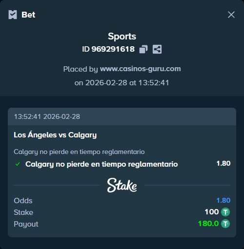 - Apuesta principal: Calgary no pierde en tiempo reglamentario a cuota 1.80