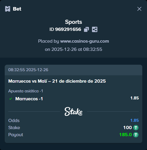 Resultado esperado y apuesta principal recomendada: Marruecos se alza con la victoria por 2-0 ante Malí. Apuesta recomendada: Apuestas a favor de Marruecos con handicap asiático (-1).