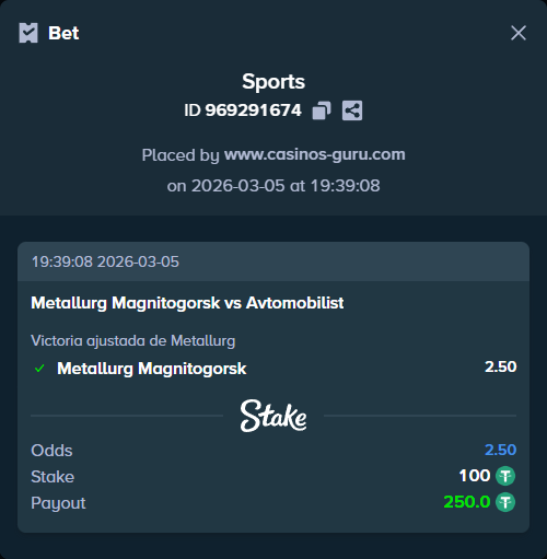 - Apuesta principal: Victoria de Metallurg Mg por margen ajustado