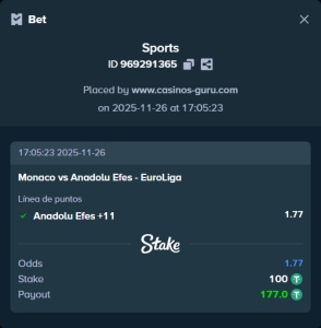 Para apostadores que busquen una opción más segura, recomendamos la apuesta de Anadolu Efes +11 puntos a una cuota de 1.77.