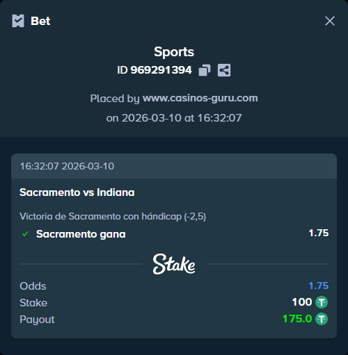 - ¿Por qué hago esta predicción? Sacramento muestra consistencia ofensiva, mejores jugadores en forma y ventaja de local. Indiana atraviesa una mala racha sin motivación clara.