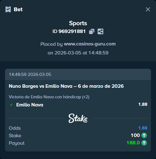 Una apuesta de alta cuota podría ser que Emilio Nava gane en sets corridos (2-0), dado el rendimiento reciente de Borges. Esto podría ofrecer una rentabilidad atractiva si se cumple.