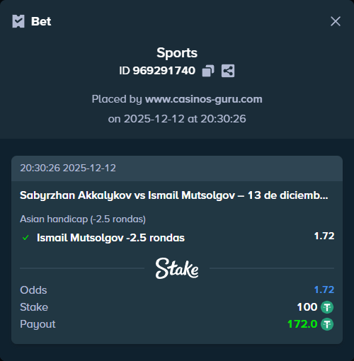 Sabyrzhan Akkalykov vs Ismail Mutsolgov – 13 de diciembre de 2025