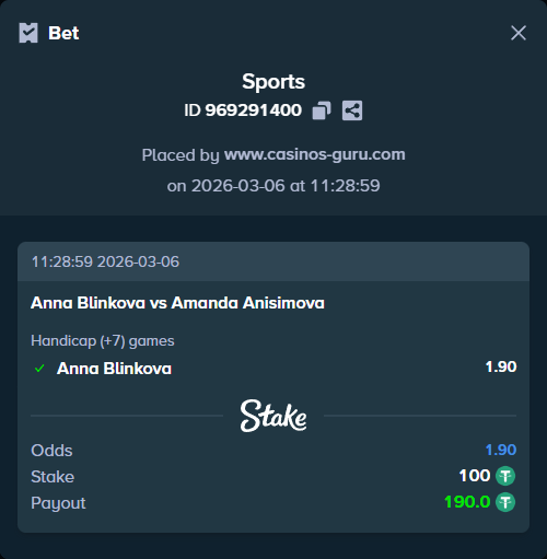 Por lo tanto, la apuesta principal es: Anna Blinkova +7 juegos a cuota 1.90.