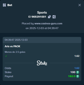 Aris busca dar la sorpresa como local ante un PAOK que llega como favorito. Apuesta recomendada: Menos de 2.5 goles.