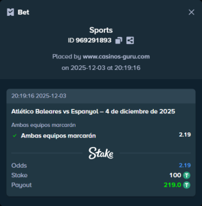 El análisis apunta a una muy buena opción de apuesta en que ambos equipos marquen, dado que el Atlético Baleares tiene una sólida racha en casa, y el Espanyol, aunque más fuerte, ha mostrado fragilidades defensivas. La cuota para esta apuesta es 2.19.