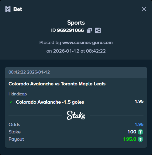 - Apuesta Principal: Colorado Avalanche con un hándicap de -1.5 goles a @1.95.