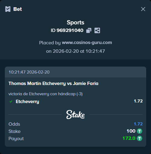 Etcheverry se perfila como favorito ante Faria; apuesta recomendada: victoria de Etcheverry con hándicap (-3)