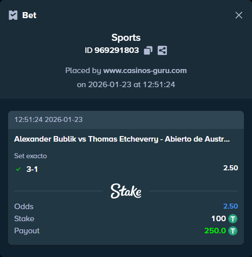 - Resultado exacto 3-1 para Bublik: cuota 2,50 (recomendada)