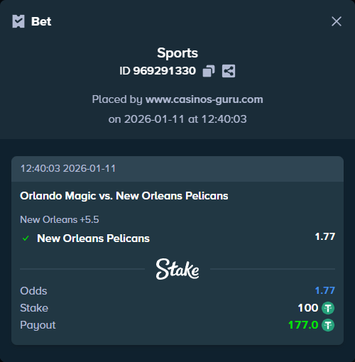 - Apuesta de Riesgo: Nueva Orleans gana el partido (3.20)