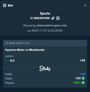 La apuesta más segura parece ser la asiática -8.5 para el Dynamo-Metar con un coeficiente de 1.88. Este equipo muestra mayor dominio en sus partidos en casa y, dado el rendimiento deficiente de Minskhanka, es razonable esperar que prevalezcan por una cantidad significativa de puntos.