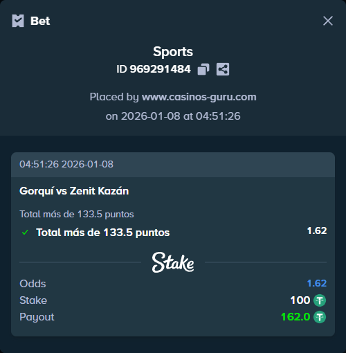 En este contexto, es evidente que el Zenit Kazán es el favorito para la victoria. Sin embargo, el equipo de Gorquí no aceptará su rol de perdedor sin lucha. Es probable que consigan ganar al menos un set en casa. Por lo tanto, nuestra recomendación de apuesta es: Total más de 133.5 puntos con una cuota de 1.62.