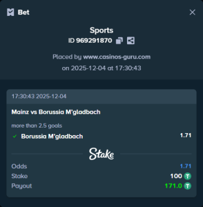 Otra apuesta segura es el total de goles de Borussia superior a uno, que tiene una cuota de 1.55. Borussia M’gladbach ha demostrado ser capaz de superar a defensas en problemas, y no creemos que el Mainz pueda detener su ofensiva.