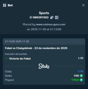 - Apuesta principal: Victoria de “Fakel” – Cuota 1.70
